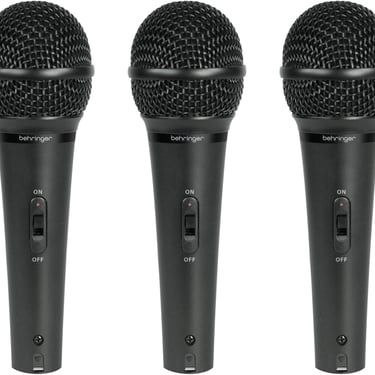 Behringer XM1800 Dynamic mics x3, simple and effective dynamic mics that work well for vocals or putting mics on amps.